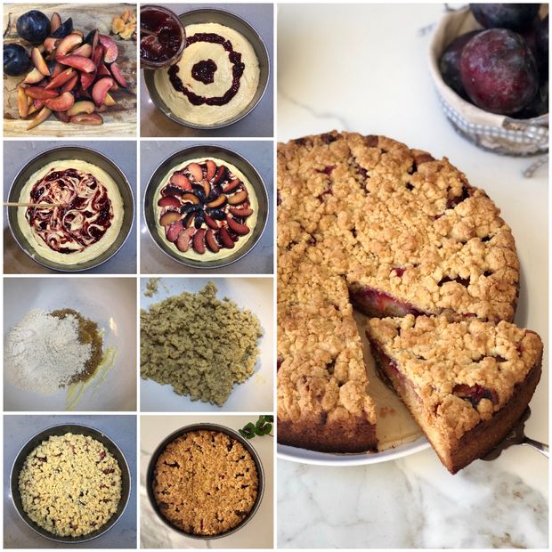 *Tereyağı, esmer şeker ve unu parmak uçlarınızla ekmek kırıntısı gibi olana kadar ufalayıp eriklerin üzerine serpiştirin.
