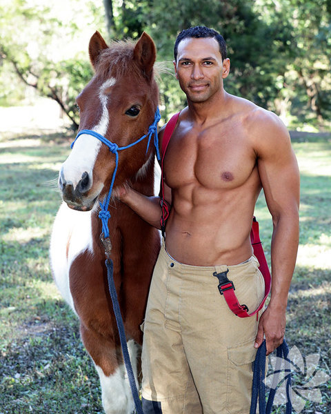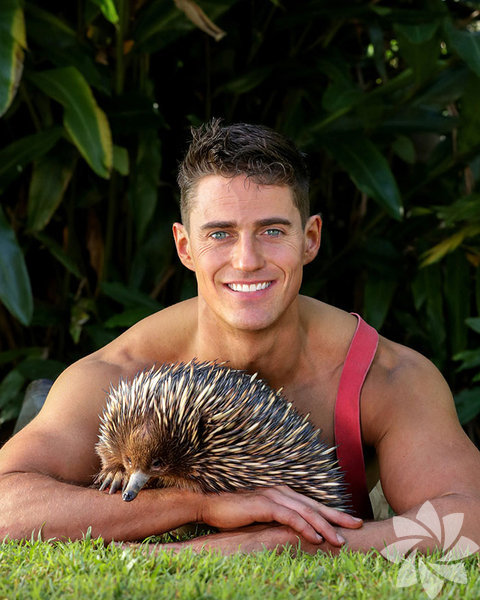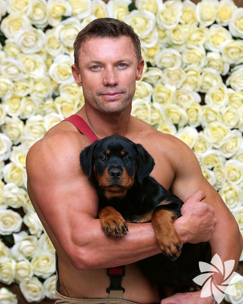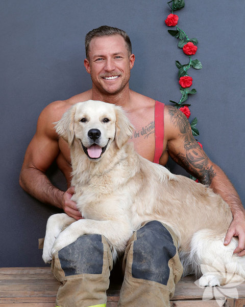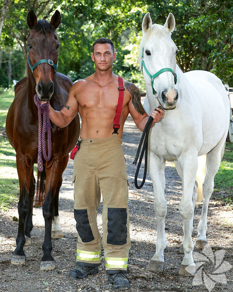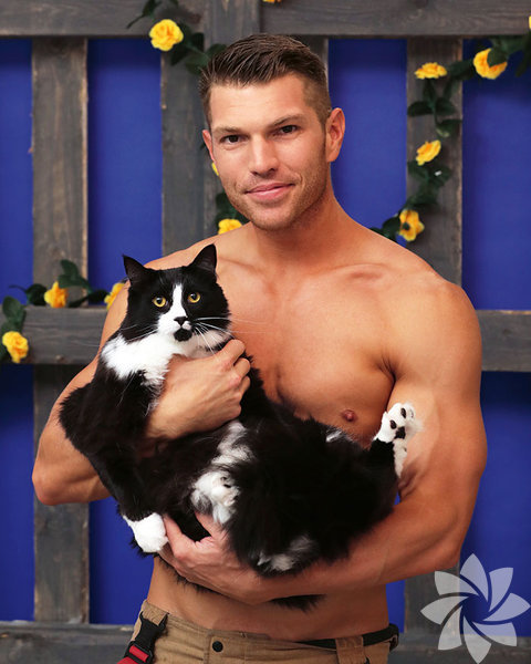 Takvimde itfaiyeciler kediler, köpekler, koalalar, kirpiler, atlar ve köpeklerle poz verdi.