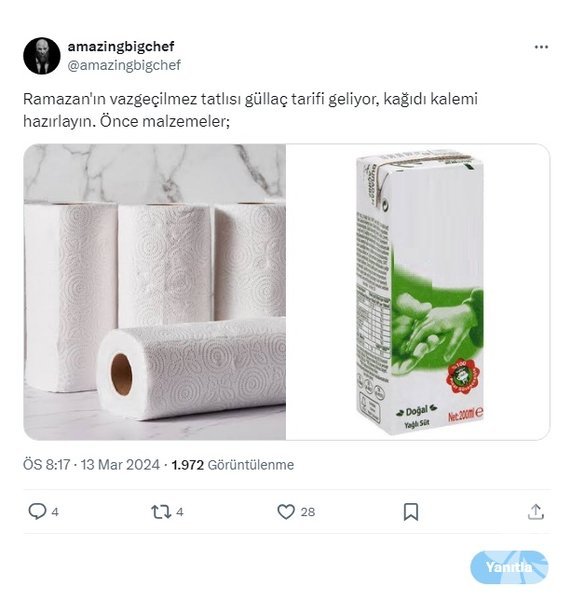 X platformunda Ramazan ayının en çok tercih edilen tatlısı güllaç ile ilgili atılan tweetler büyük beğeni topluyor. İşte eğlendiren güllaç tweetleri...