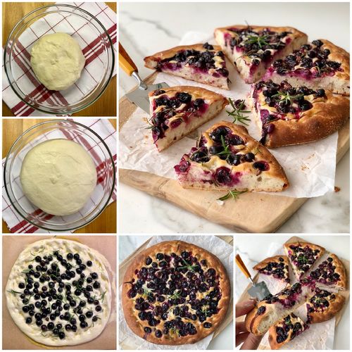 *Fırın tepsinizin boyutundaki pişirme kağıdını tezgaha yayın, üzerine irmik serpip mayalanan hamuru irmiklerin üzerine alın. 2 yemek kaşığı zeytinyağı akıtıp elinizle 30 cm çapında olacak gibi ortadan kenara doğru açın. Ortalarına parmaklarınızla hafifçe oyuklar açarak üzümleri ve biberiyeleri serpiştirin, pişirme kağıdıyla birlikte tepsiye geçirin ve fırına verirken ısıyı 200 dereceye düşürün. Üzeri kızarana kadar yaklaşık 20 dakika pişirin. Piştikten sonra dilerseniz üzerine maldon tuz serpiştirin.