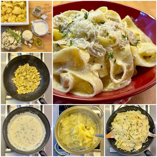 Bol mantarlı & kremalı, parmesanlı ve taze kekikli leziz makarna. Bu defa kalın kesilmiş yumurtalı pappardelle makarna kullandım, dilediğiniz makarna çeşitiyle yapabilirsiniz. Ayrıca elinizde trüflü zeytinyağı varsa lezzeti kat kat artıyor...