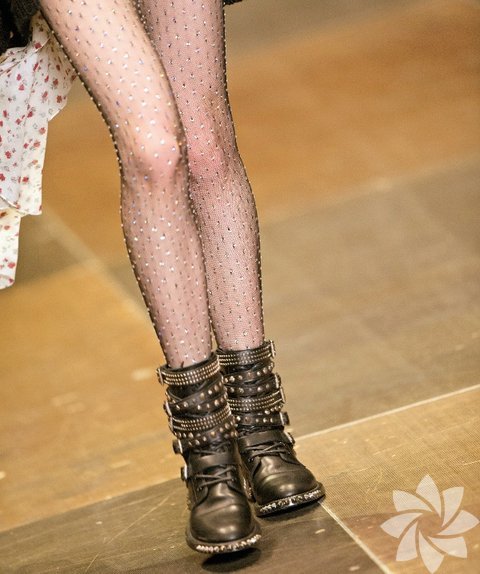 Dekoratif öğelerin yanı sıra zincirler, fermuarlar, çiviler, zımbalar gibi metalik detaylar grunge havasını ayaklarda hissettiriyor. Özellikle zincir detaylı botlar, yeni sezonun en hit modellerinden. Punk akımına bu modellerle ayak uydurabilırsiniz.
