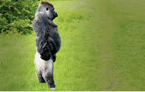 1 yaşından sonra bel kemiğindeki bir rahatsızlıktan ötürü dimdik duran, insan gibi yürüyebilen goril Ambam, İngiltere’nin Kent bölgesinde Port Lympne’de bir doğal yaşam parkında yaşıyor.