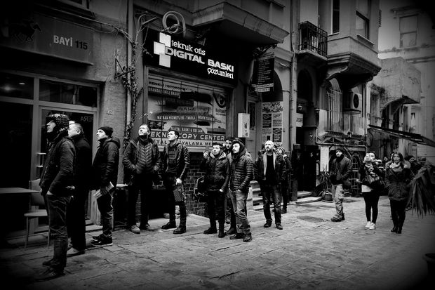 Proje süresince beni en çok zorlayan; İstanbul’da yaşadığımız için kanıksadığımız, içinde yer aldığımız günlük hayatın karmaşından sıyrılıp gözlemci olabilmek ve insanların ruh halini yansıtabilmekti. Ancak, işinde gücünde yolda yürüyen son derece sıradan insanların davranışlarını fotoğrafa aktarınca hiç de öyle etkili olmuyor. O yüzden bir olağanüstü durum, ilgi çekici bir mimik, normalin dışında ruh hali gözlemleyip kritik anı yakalamak gerekiyordu. Bu süreçte sabahtan akşama kadar sokaklarda gezip fotoğraflamaya değer tek bir insanlık hali yakalayamamışken eve dönüş yolunda ilginç sürprizlerle karşılaştığım da oldu. Yani ne zaman, nereden fotoğraf çıkacağı asla belli olmadığından sürekli gözler açık, eller deklanşörde gezmek gerekiyor.