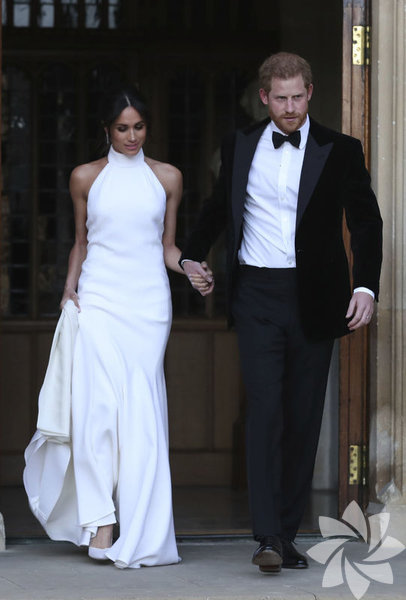 Meghan Markle'ın düğün sonrası verilen davet yemeğine katıldığı elbise de gelinliği kadar sade oldu
