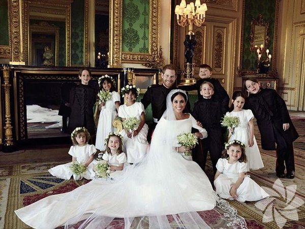 Kraliyet çiftinin küçük nedimelerle birlikte çektirdiği kare de paylaşılan fotoğraflar arasındaydı.