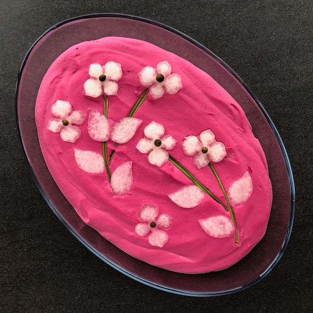 Geçenlerde yaptığımız kurabiye ev atölyesi için misafirlerimize ikramlık neler hazırlayabilirim diye planlama yaparken buzluktaki ezilmiş fasulyelerle -daha önce buradan tarifini paylaştığım pancar turşusundan da kullanarak- bir deneme yapmaya karar verdim. Tadı çok güzeldi ama üzerini iştah açıcı hale getirmek için süslemek gerekliydi.