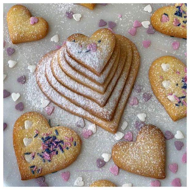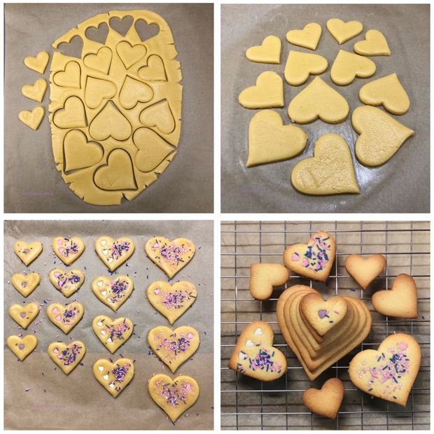 *Arzu ettiğiniz kurabiye kalıplarıyla kesin. Kenarlarından kalan hamurlar bitene kadar aynı işleme devam edin. Üzerlerine isterseniz benim yaptığım gibi renkli şeker süslemeleri serpin.